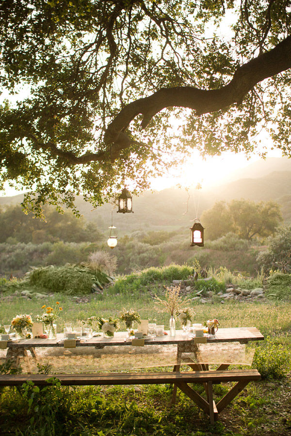 It's that time of year again when we get our barbecues out of hibernation, dust off the deck chairs and enjoy the sun out in our gardens. With the spells of sunshine we've been having, why not throw a little garden party? Cute jam jars filled with fresh lemonade, bunting and lanterns hung, flowers in glass bottles dotted along your table and buffet food galore! Have a look at these lovelies to inspire you...